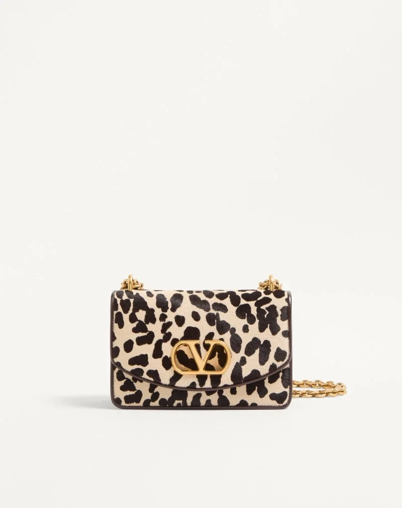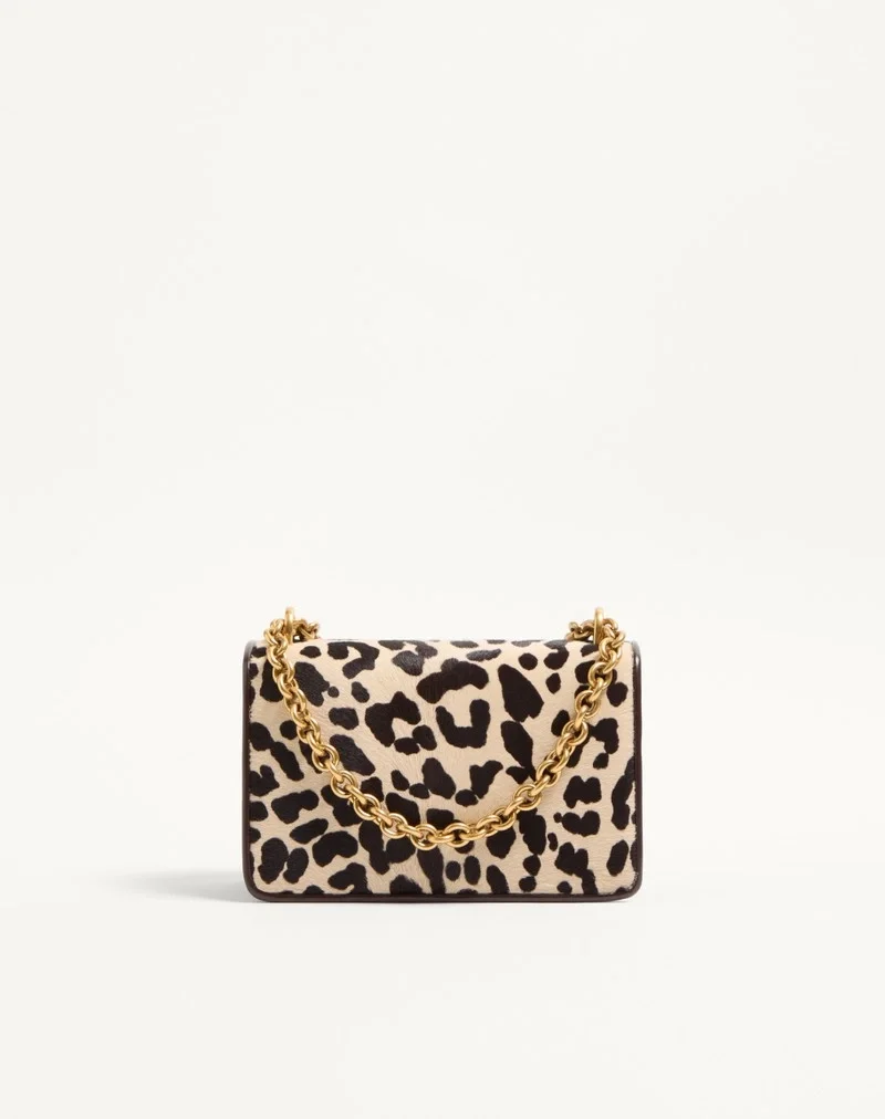 Valentino Garavani Vain kleine Umhängetasche aus Kalbsleder mit Pony-Effekt, Animalier-Print und metallischem VLogo-Signaturdetail. Dank der verschiebbaren Kette kann die Tasche über der Schulter oder quer über den Körper getragen werden.