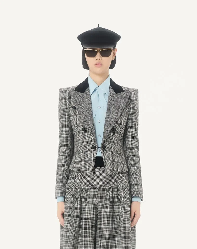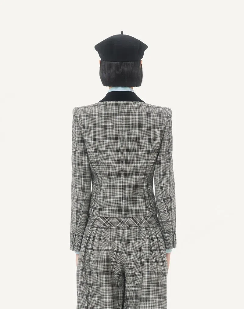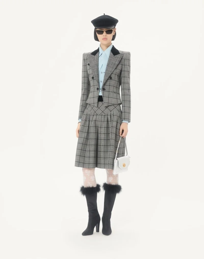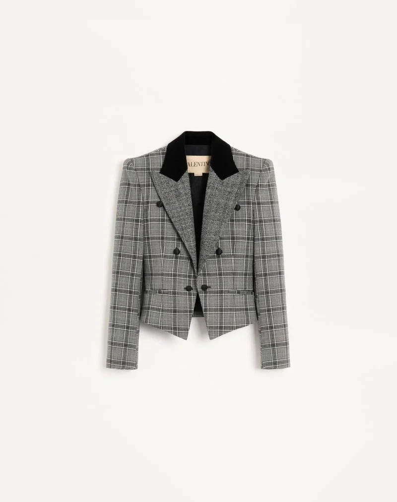 Wolljacke mit Karomuster und Revers aus Mouliné-Wolle