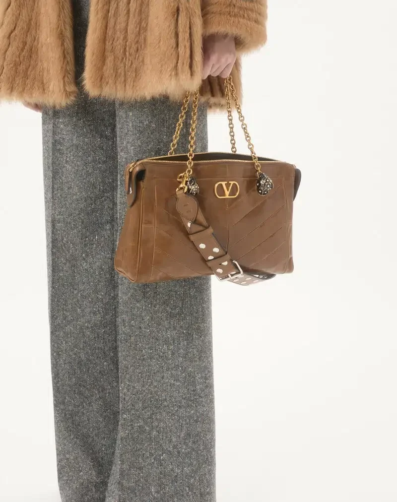 Der Look des Models wird durch eine Valentino Garavani Panthea Tasche und Valentino Garavani Panthea Schuhe abgerundet.